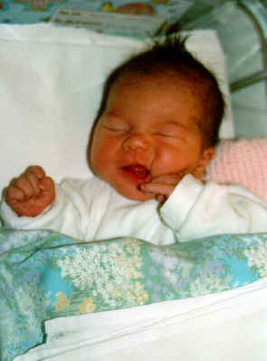 Déjà 1 jour avec nous. Ca se fête ! Aujourd'hui Lauriane à eu plein de visites. De toute façon elle a pas dû en voir beaucoup car elle a dormi presque tout le temps, pleuré une ou deux fois et mangé un peu au sein de sa maman. Ah oui, elle a aussi fait plein de grimaces à son papa... Si vous voulez venir la voir ne vous gênez surtout pas. Marianne sera encore toute la semaine prochaine à la maternité. Pour ceux qui n'y sont pas habitués, les heures de visites sont: de 14h00 à 16h00 et de 18h30 à 20h00.